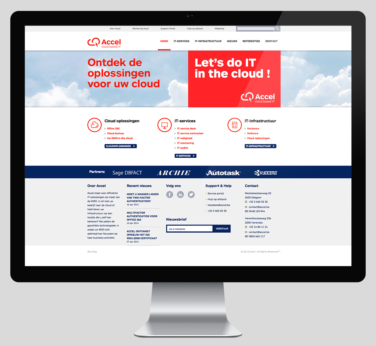 Accel staat voor efficiënte IT-oplossingen op maat van de KMO. U wil met uw bedrijf naar de cloud of hebt liever uw infrastructuur op een locatie die u zelf kan beheren? Ze zetten de geschikte technologieën in zodat uw KMO zich optimaal kan focussen op haar business activiteit.